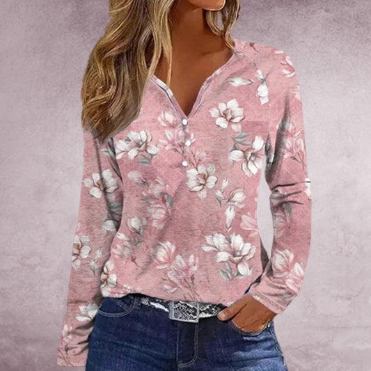 Vintage Printed Shirt V-neck Long Sleeve Top